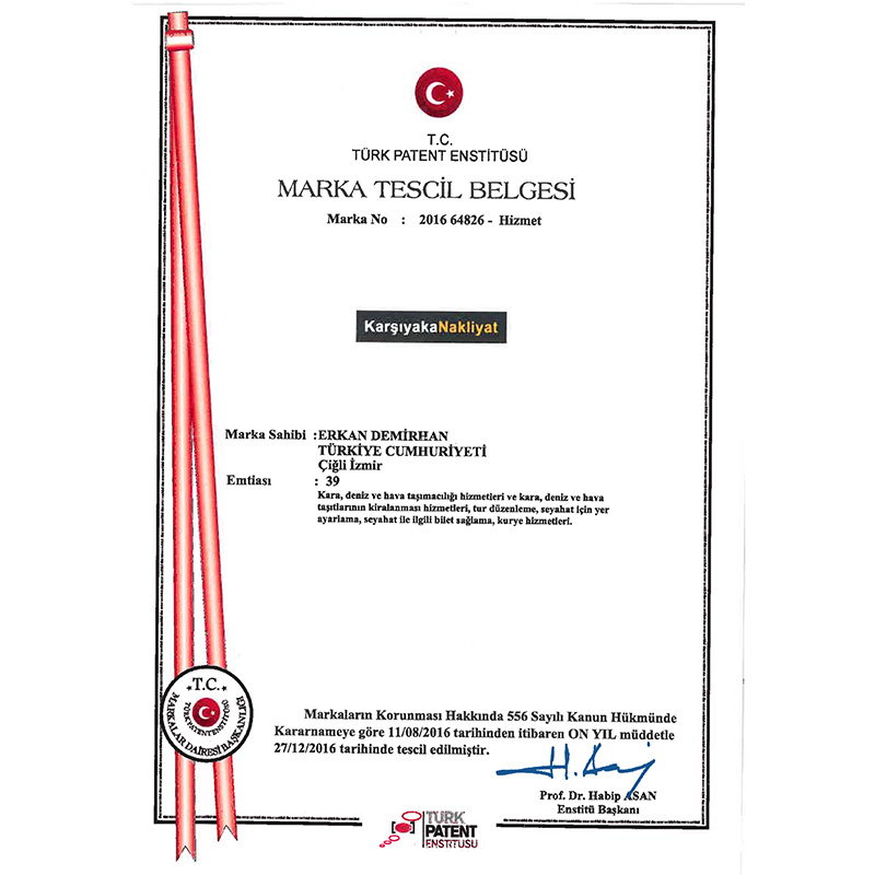 Araçlarımız İzmir Kamyon ve Kamyonetçiler Esnafı Odasına kayıtlıdır ve Ulaştırma Bakanlığı'ndan onaylı "K" yetki belgelidir.